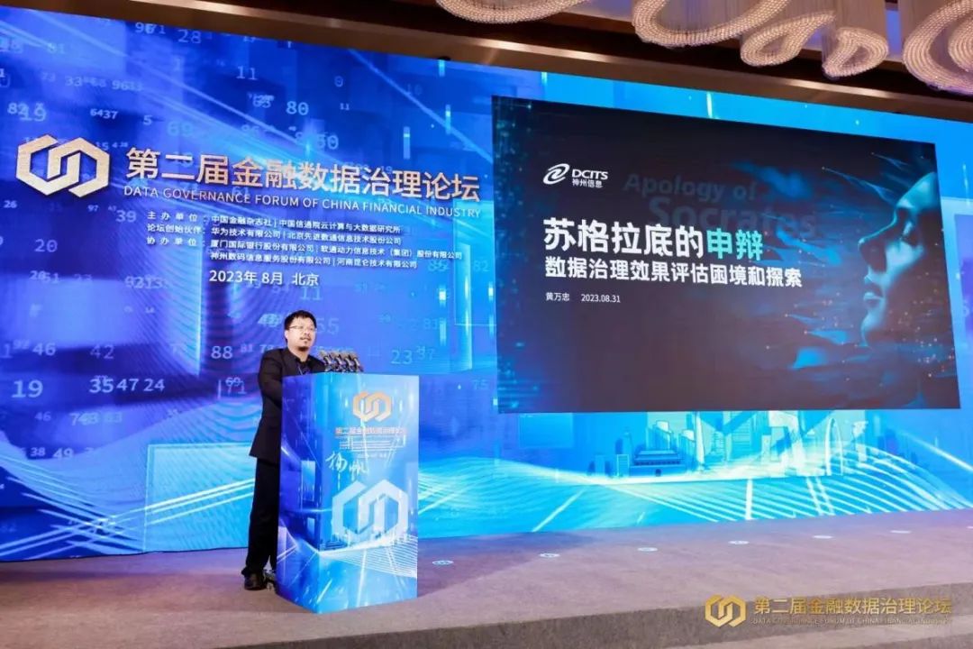 神州信息首席数据官黄万忠在主会场发表题为《苏格拉底的申辩 数据治理效果评估困境和探索》的演讲。